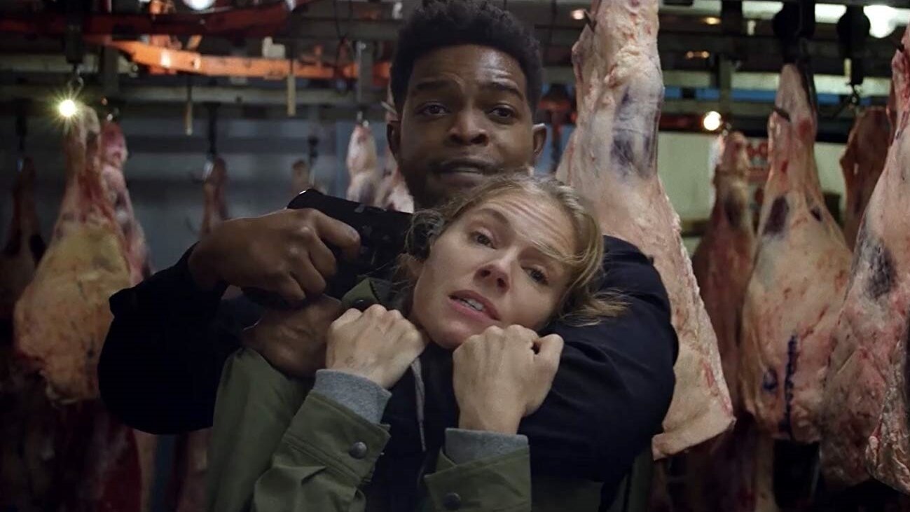 Trigger happy: Stephan James holds Sienna Miller hostage