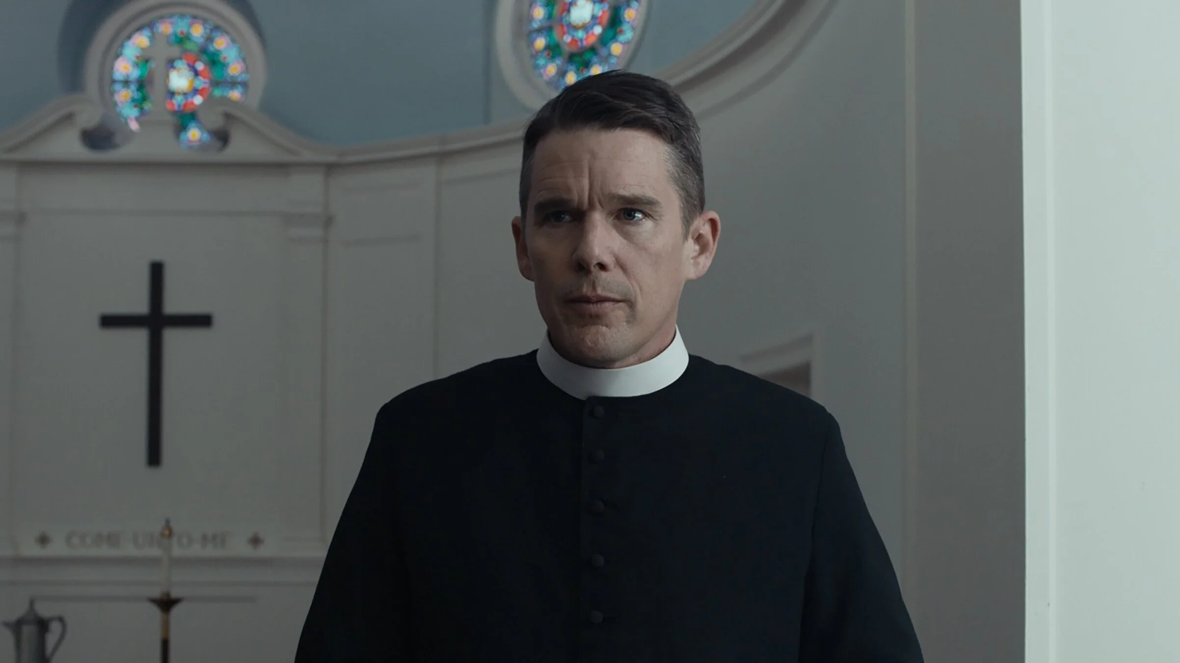 Back in 1980, Schrader's American Gigolo was spoken of by him as a work inspired by Bresson's brilliant Pickpocket of 1959. This time around the relevant earlier film is not openly cited, but it must be the case that First Reformed is not merely Bergmanesque but a piece which, regardless of additions, has its roots in the 1963 film Winter Light which just happens to be my own favourite among Bergman's many masterpieces. How one views First Reformed will inevitably be influenced by the extent to which one is familiar with the work which inspired it. Here Ethan Hawke is the pastor, a widower with a dwindling congregation, attending his First Reformed church outside of New York. As before there is a man, Michael (Philip Ettinger), so disturbed by the nightmare of human existence that he commits suicide (although now his fears centre not on living in a nuclear age but on environmental issues ignored and the failure to face up to climate change).